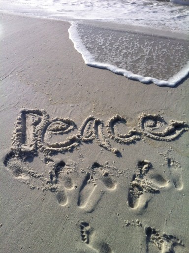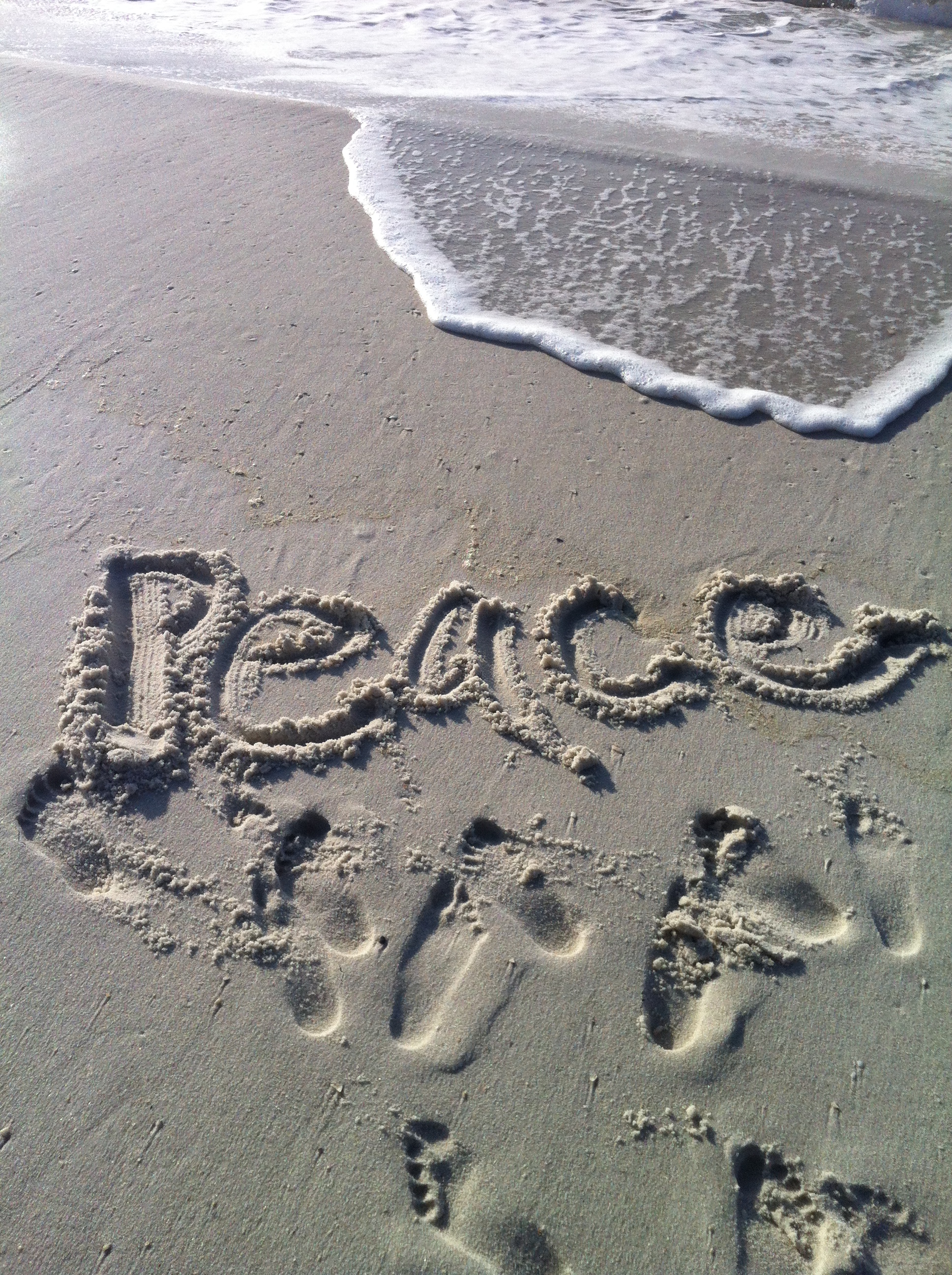 As I listened to the water, I prayed that the brokenness, conflicts, and violence in our world would be washed away so that peace may flood all hearts, minds, spirits, and governments. As I wrote my prayer for peace in the sand, the waves met it multiple times on their way to and from the shoreline, but did not wash it away. Perhaps the sea, too, awaits the tsunami of peace.